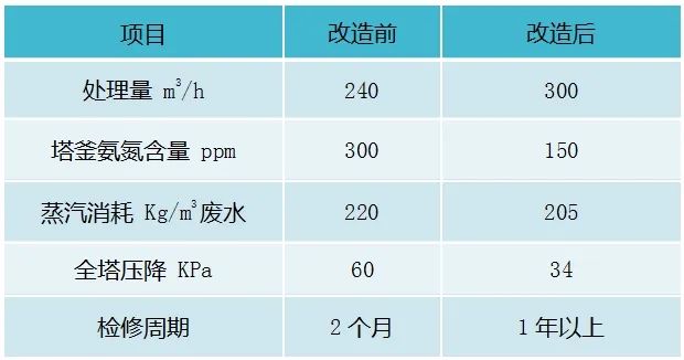 2019年更換為我公司CJVP塔板后,裝置運行穩(wěn)定,檢修周期延長,處理量擴(kuò)大25%,蒸汽消耗節(jié)省5%以上,改造前后數(shù)據(jù)對比如下: