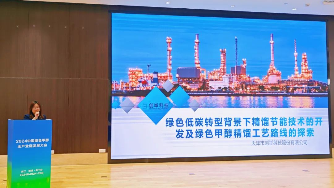 創(chuàng)舉科技應邀上臺發(fā)表以《綠色低碳轉(zhuǎn)型背景下精餾節(jié)能技術(shù)的開發(fā)及綠色甲醇精餾工藝路線的探索》為主題的精彩演講。