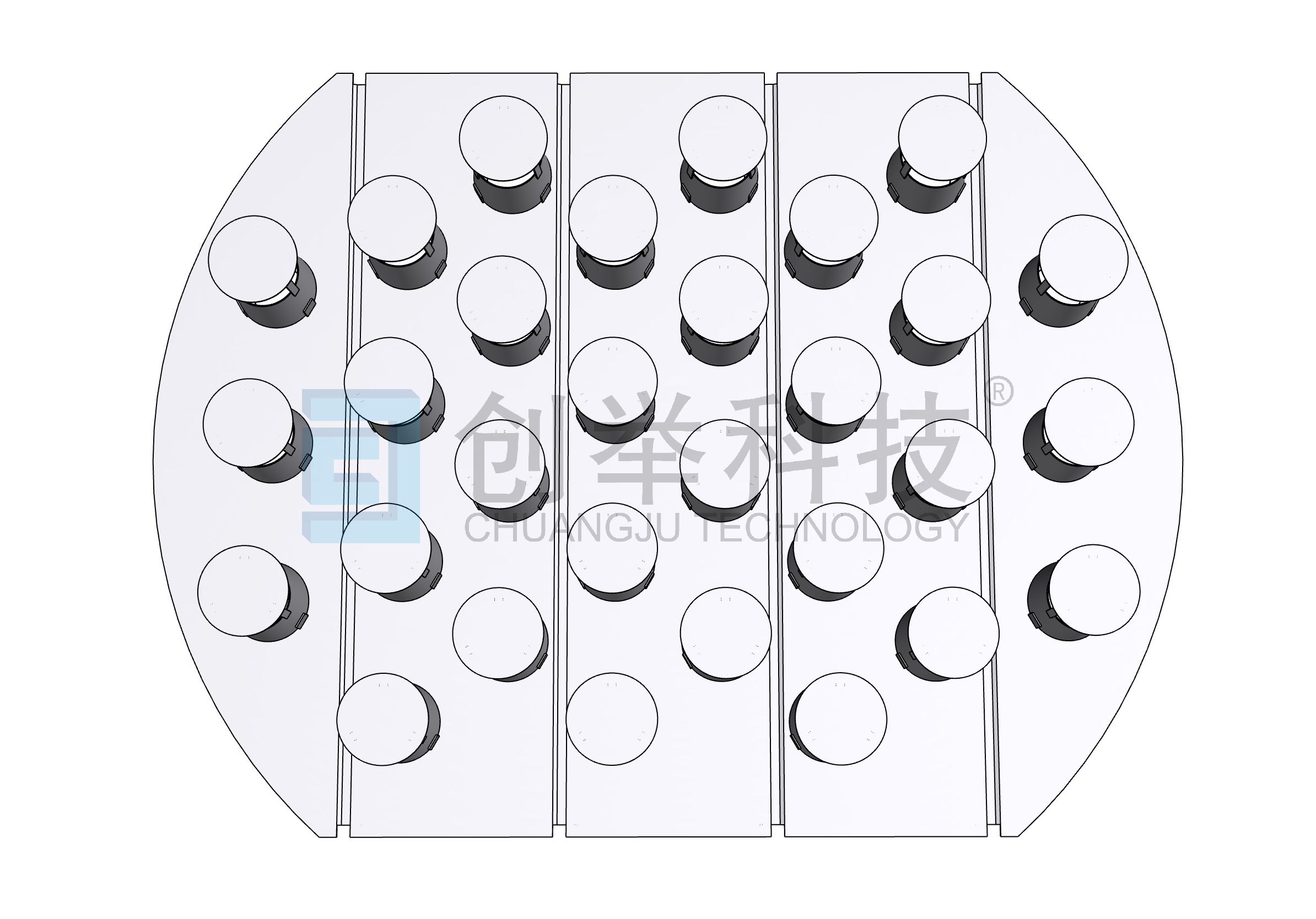 CJZP系列(錐筒系列噴射型塔板)是集前四大系列塔板的優(yōu)勢而研發(fā)的專利塔板,經(jīng)過實(shí)驗(yàn)研究發(fā)現(xiàn)其結(jié)構(gòu)更能滿足氣液縮流噴射的均勻性和分散性,傳質(zhì)效率更高,適用性更廣,同時(shí)該塔板可針對不同工況需求進(jìn)行結(jié)構(gòu)調(diào)整。